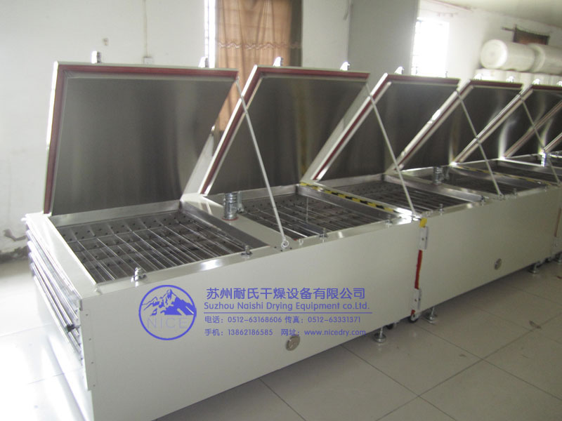 技术参数 型 号:NC-SD 内胆材质:不锈钢 外壳材质:冷轧碳钢板,表面烤漆 内胆尺寸:深10000*宽1000*高300(mm) 温 度:150℃ (室温--150℃范围内可任意调节) 电压电流:380v 50hz 发热装置:不锈钢发热管 发热功率:26.5KW 热 源:电 产品特点 标准功能 运风循环:两侧风道,水平运风,单向送风,热风内循环 触摸式LED双数显温控仪表:PID功能可任意调节温度值,控温精准,灵敏度高 时间控制器:1/m—99.99/h内可任意设定恒温时间值 升级功能 报警功能:恒温时间结束时,切断加热电源。(风机正常运转) 超温保护:防止工作中温控仪表产生故障而引起持续升温,确保箱内烘烤物件的安全 记录功能:随时记录工作温度,随时打印,打印时间间隔可设定 电锁:烘箱工作时可锁上箱门,防止操作人员不规范操作 排气口抽风:烘箱排气口可装配抽风装置 USB接口: 连接计算机,可记录,打印,远程控制及多点组合控制 按需定制:烘箱可按照用户最适用的尺寸定制